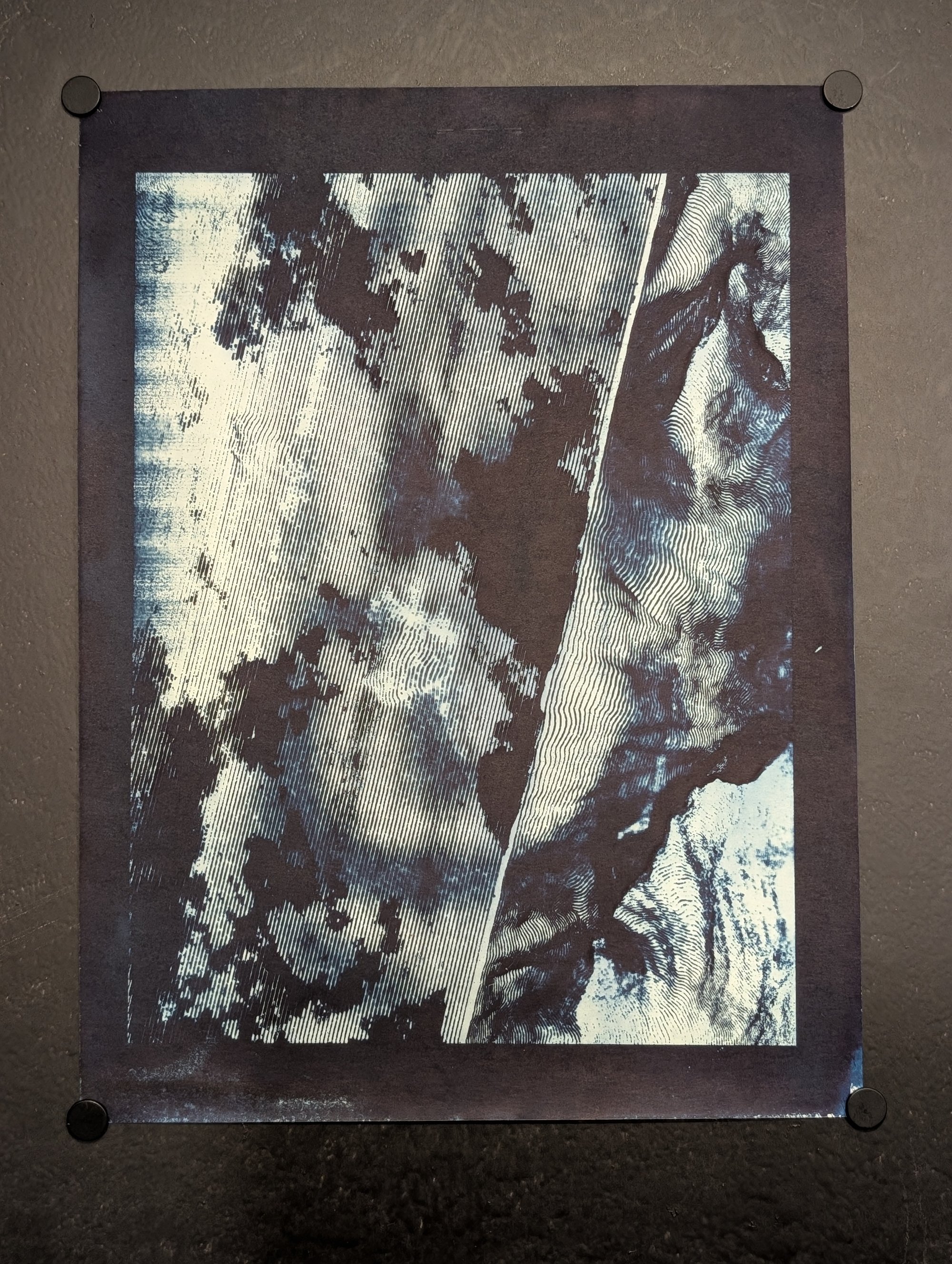 Above the Clouds is part of my generative topography series.Blue Cyanotype